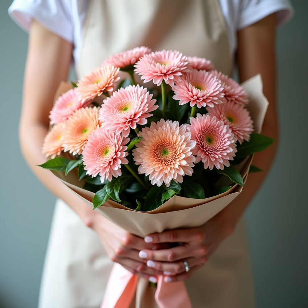 Состав букета: 15 крупных хризантем (оттенки могут варьироваться в зависимости от наличия, мы подберем наиболее свежие и красивые цветы), сочная зелень для создания пышного объема. Мы используем только свежие цветы высшего качества, которые проходят строгий контроль перед отправкой. Каждый букет собирается опытными флористами с учетом всех нюансов цветочной композиции, чтобы гарантировать его безупречный внешний вид и долговечность.