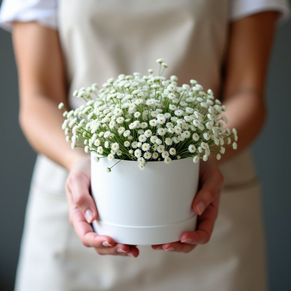 Представьте: вы дарите не просто цветы, а настоящее облако нежности. Миниатюрная коробочка с гипсофилой – это символ легкости, чистоты и романтики. Она идеально подойдет для признания в чувствах, поздравления с небольшим праздником или просто для поднятия настроения близкому человеку. Воздушные веточки гипсофилы, словно невесомые облачка, наполнят пространство очарованием и уютом.
