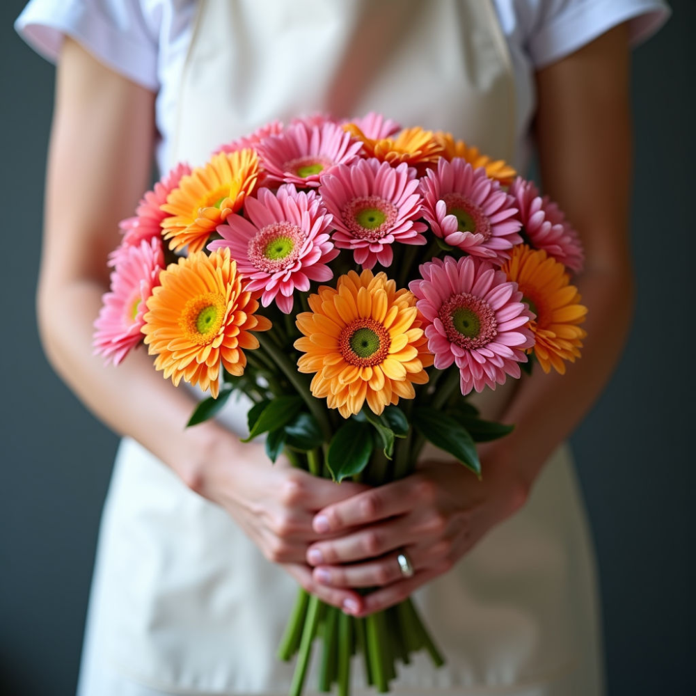 Этот очаровательный букет, созданный флористами Базы цветов в Санкт-Петербурге, станет великолепным дополнением к любому торжеству или просто приятным сюрпризом для близкого человека. Яркие, сочные цвета ромашковых хризантем наполнят помещение атмосферой тепла и уюта. Каждая веточка бережно подобрана, чтобы создать гармоничную и пышную композицию.