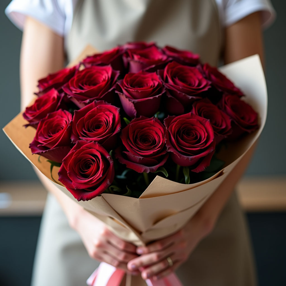 В состав букета входят 25 элегантных бордовых роз, выращенных в Эквадоре, известных своим великолепным ароматом и длительным сроком жизни.