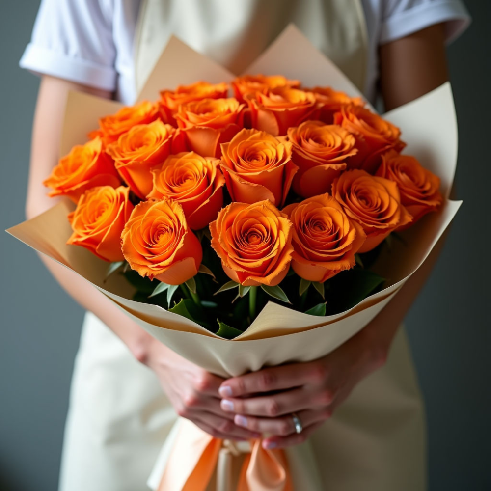 Букет 51 оранжевая роза 40см (Кения)