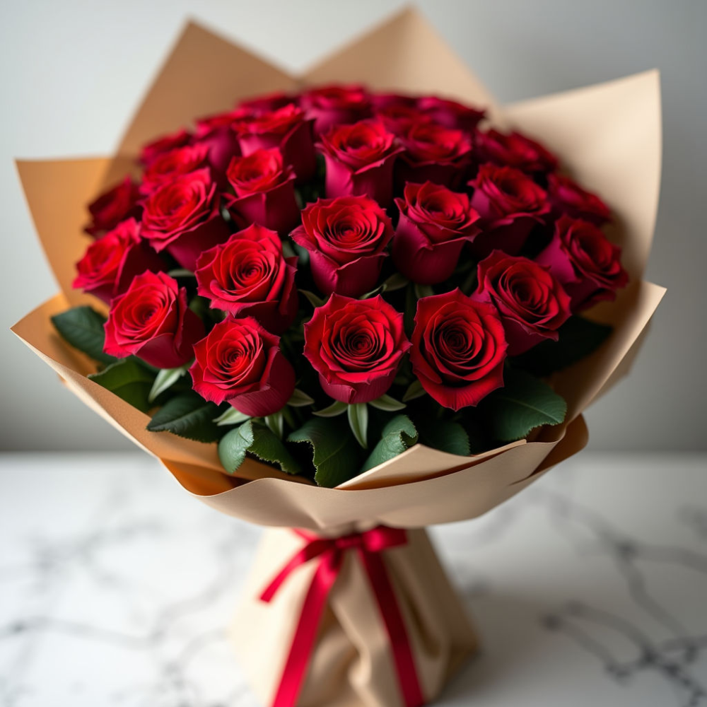 В состав букета входят 24 свежие розы высшего качества, аккуратно собранные нашими флористами. Дополнительно используется упаковочная бумага и лента.