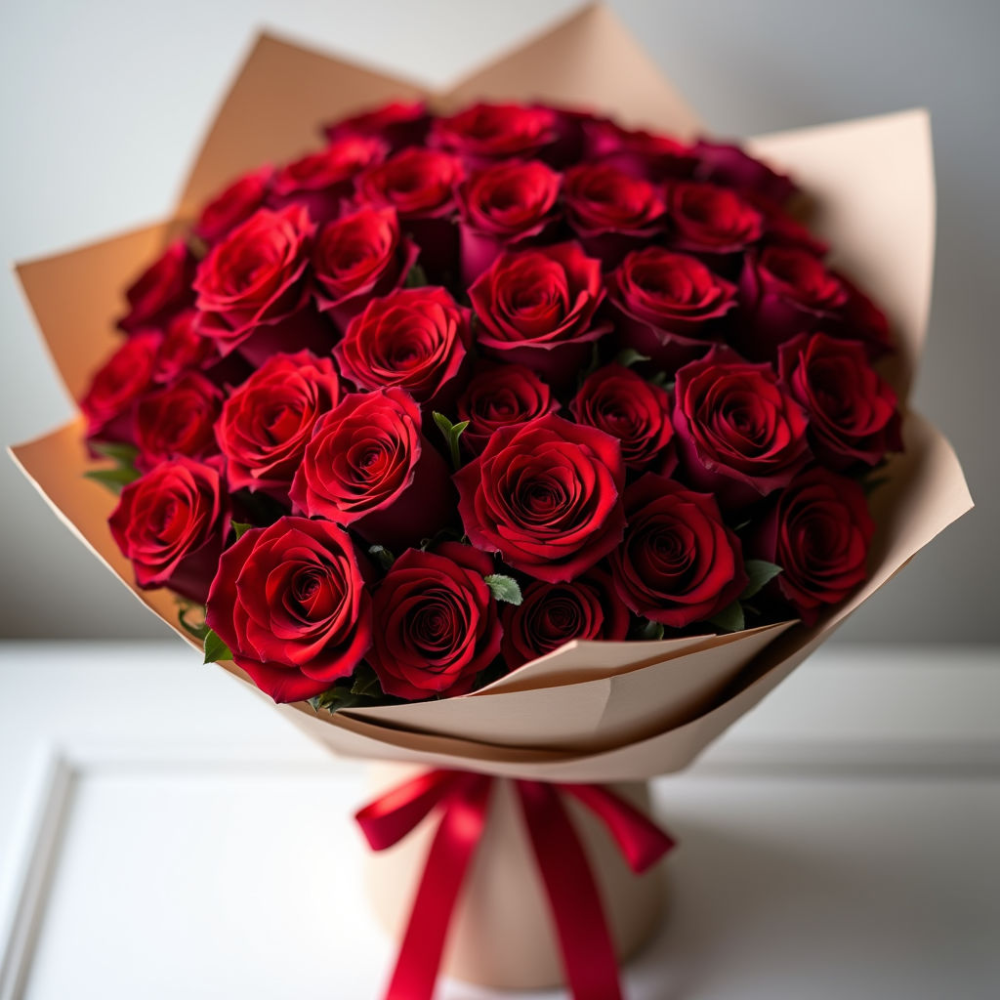Изысканный букет из 36 роскошных красных роз – классика жанра, символ страсти и глубоких чувств. В композиции используются только свежие, отборные розы высшего качества.