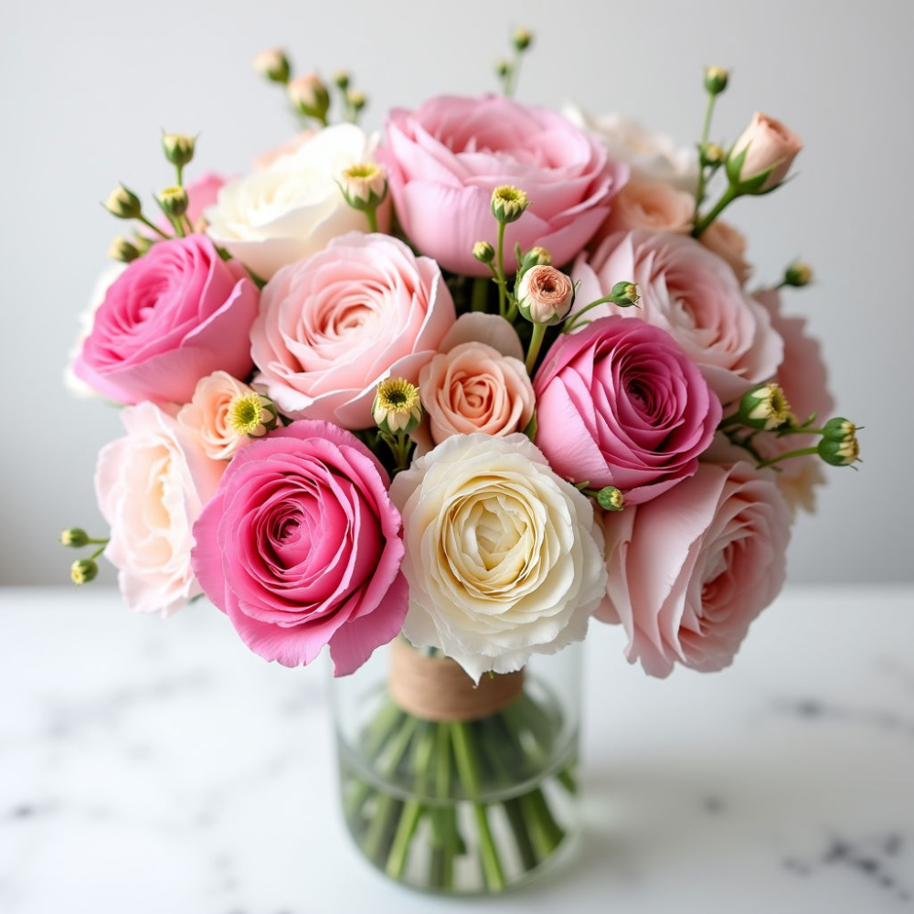 Букет Весна – это воплощение изысканности и стиля. Тонкий аромат роз, яркость гвоздик и нежная красота ранункулюса создают неповторимую композицию. Лизиантусы добавляют букету воздушности и легкости, а пионовидная спрей роза привносит нотку романтики. Это идеальный выбор для романтического свидания, дня рождения или любого другого торжественного события.