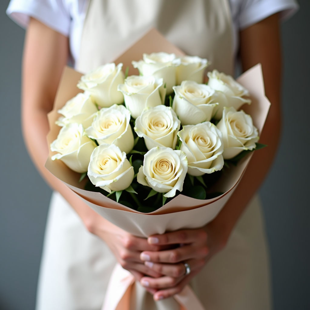 Изысканный букет из 21 белоснежной розы – символ чистоты, нежности и совершенства. В композиции используются только свежие, отборные розы высшего качества.