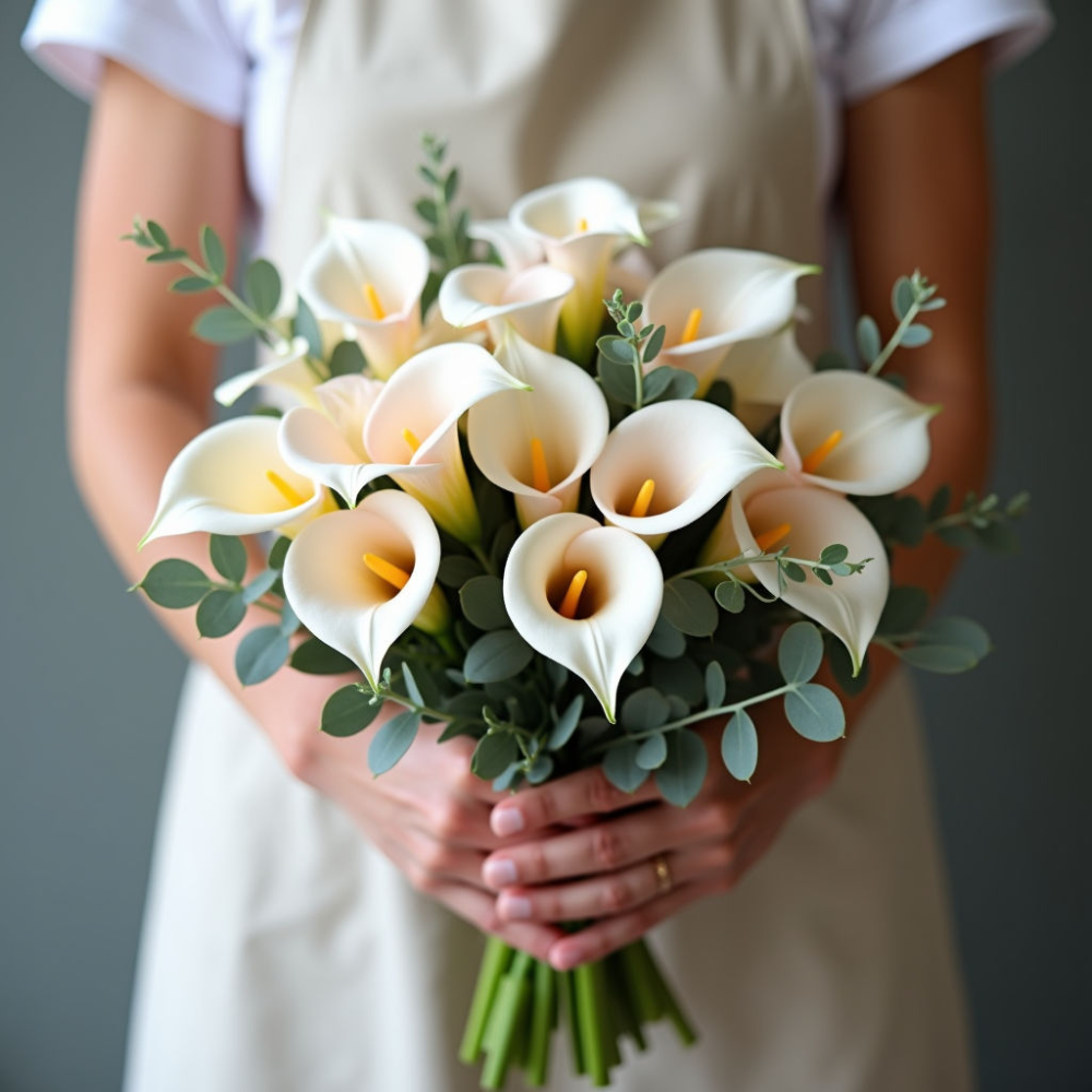 Нежный и элегантный букет Ласковый взгляд – идеальный подарок для любимой женщины. Сочетание изысканных калл и свежей зелени эвкалипта создает атмосферу романтики и нежности.