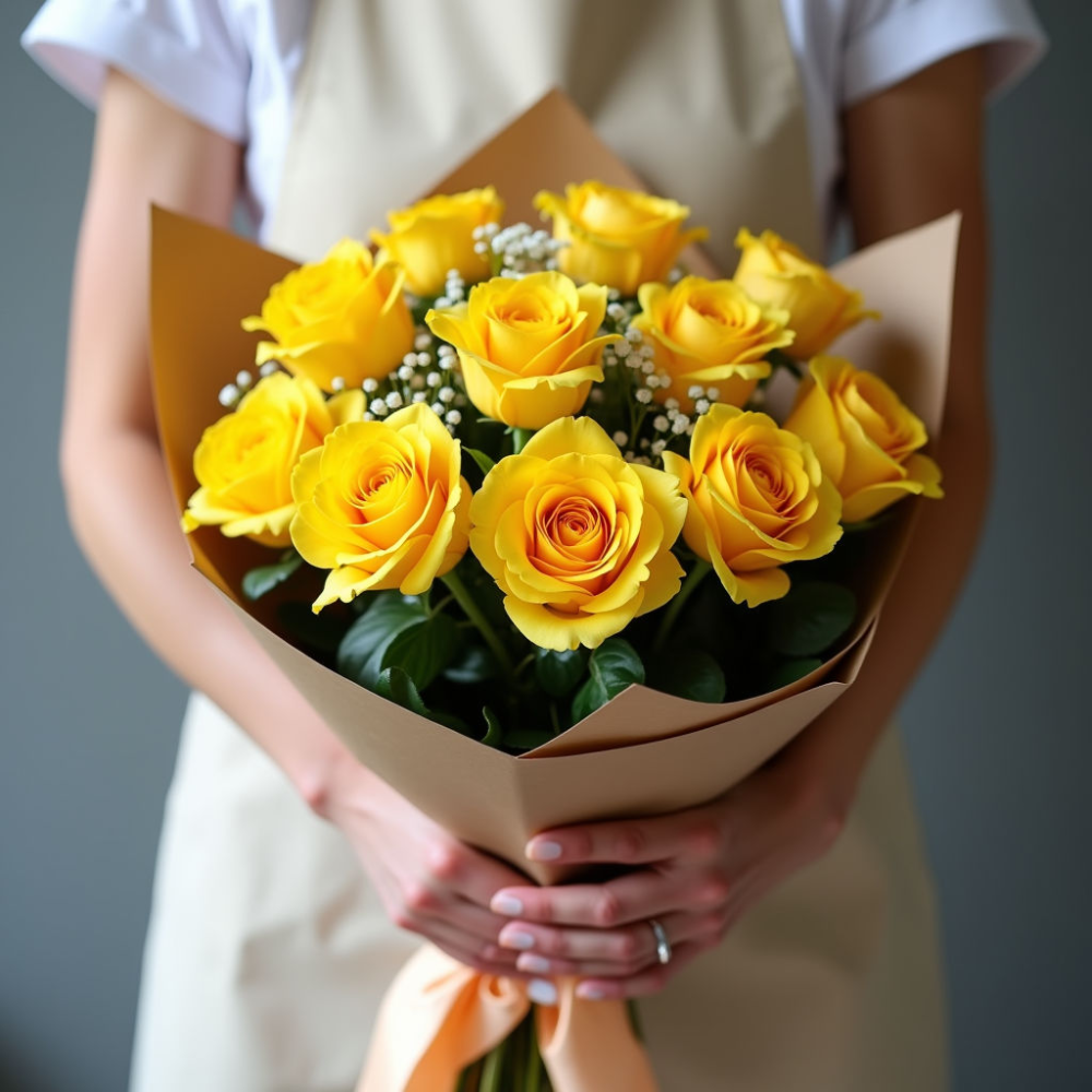 Солнечный букет Желтая феерия – это 10 очаровательных желтых спрей роз, создающих атмосферу радости и тепла. Идеальный подарок для близкого человека или для украшения вашего дома.
