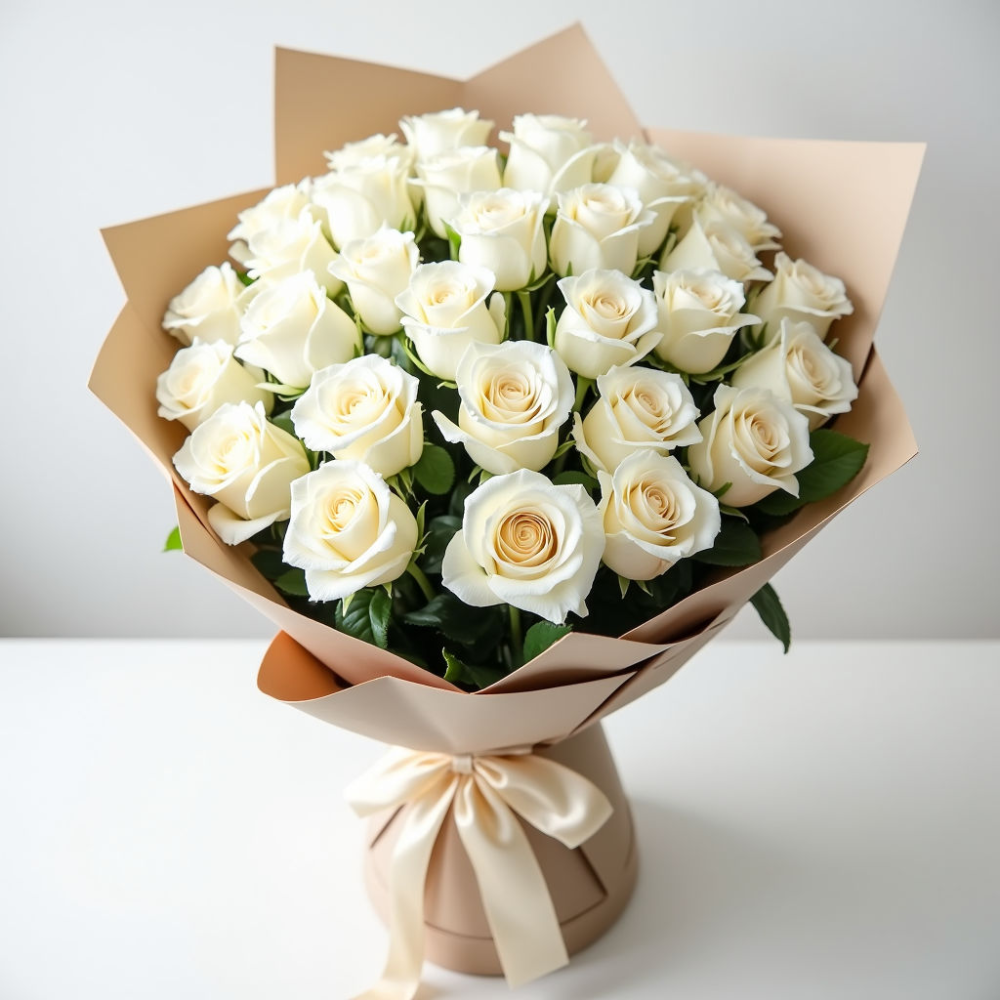 Букет 101 белая роза – это больше, чем цветы; это яркое выражение ваших чувств. Идеален для свадеб, юбилеев, дней рождения и других важных событий. Роскошный подарок, который запомнится надолго, символ вашей искренности и щедрости.