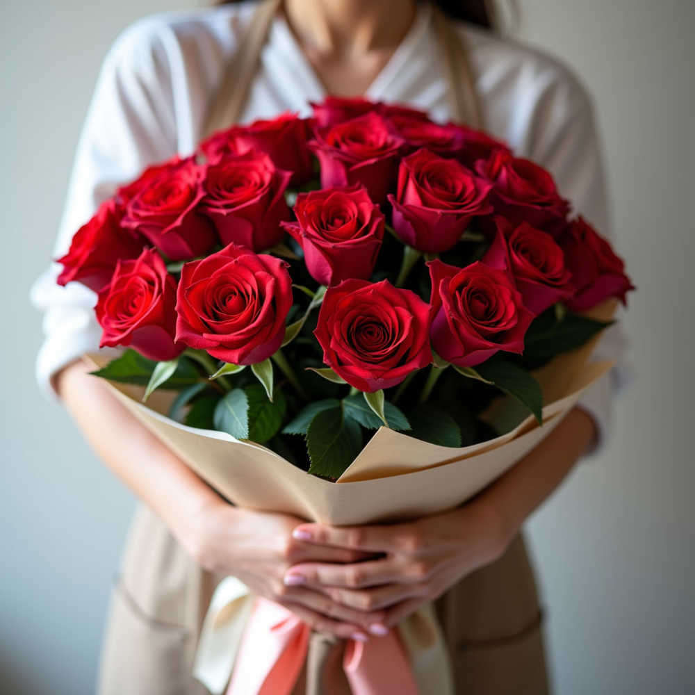 Изысканный букет из 25 роскошных роз Hermosa длиной 90 см. Идеальный подарок для особого случая.