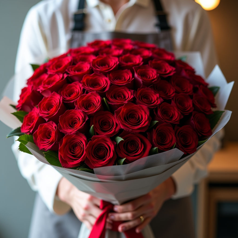 Состав: 101 роза Freedom, Нидерланды, упаковка — стильная бумага или прозрачная пленка на выбор. Каждая роза тщательно отобрана, чтобы создать гармоничный и роскошный букет.