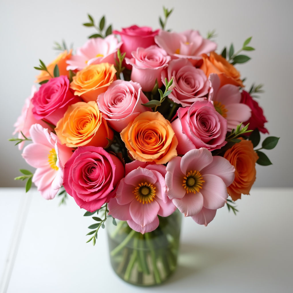 Розы: Благородные розы – классика цветочного искусства. В этом букете мы используем розы сочных оттенков, гармонично сочетающихся с альстромериями. Они добавляют букету роскоши и элегантности. Розы символизируют любовь, красоту и страсть. В зависимости от выбранного вами варианта, мы можем использовать розы различных сортов, отличающихся формой бутона и ароматом.