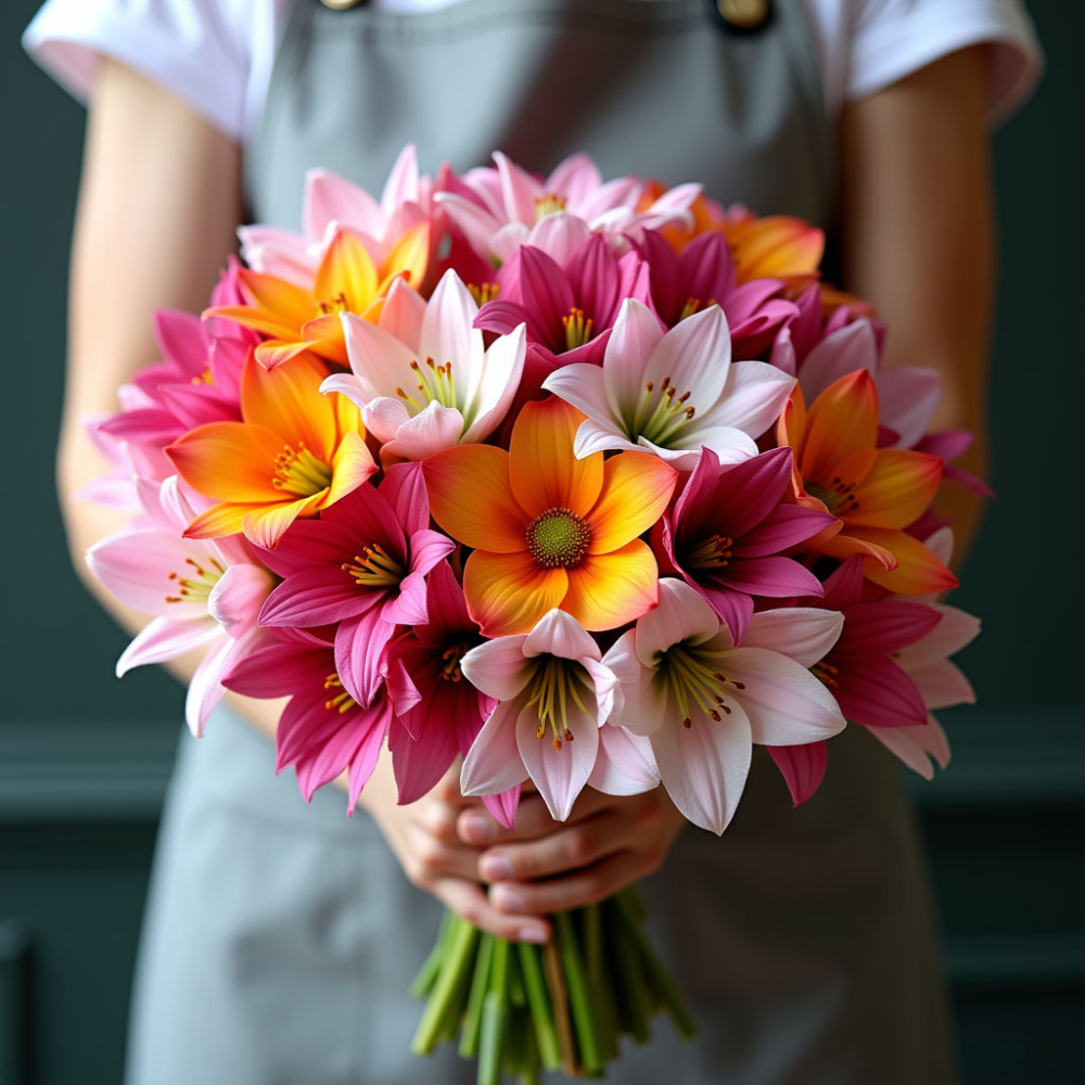 Представьте: 101 очаровательная альстромерия, собранная в пышный букет, играет всеми красками радуги. Нежные пастельные тона, яркие насыщенные оттенки – каждая альстромерия уникальна и неповторима. Этот букет – настоящее произведение флористического искусства, созданное с любовью и вниманием к деталям.