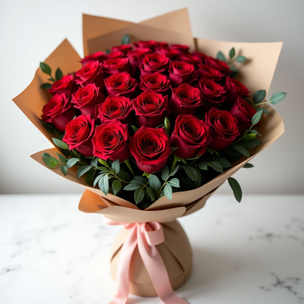 Великолепный букет из 47 роскошных роз длиной 70 см. Идеальный подарок для выражения самых сильных чувств.
