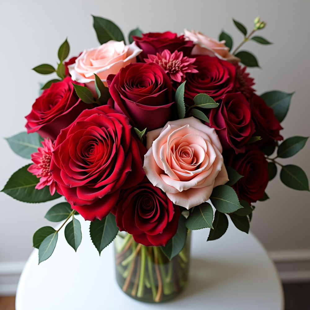 Пышный букет Мулен Руж – воплощение страсти и элегантности. Идеальный подарок для любимой женщины или яркое украшение любого торжества.