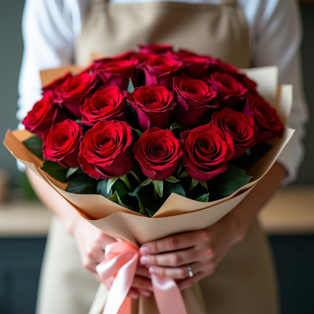 Изысканный букет из 25 роскошных красных роз – классика жанра, воплощение страсти и элегантности. Идеальный подарок для любимой, близкого человека или торжественного события.
